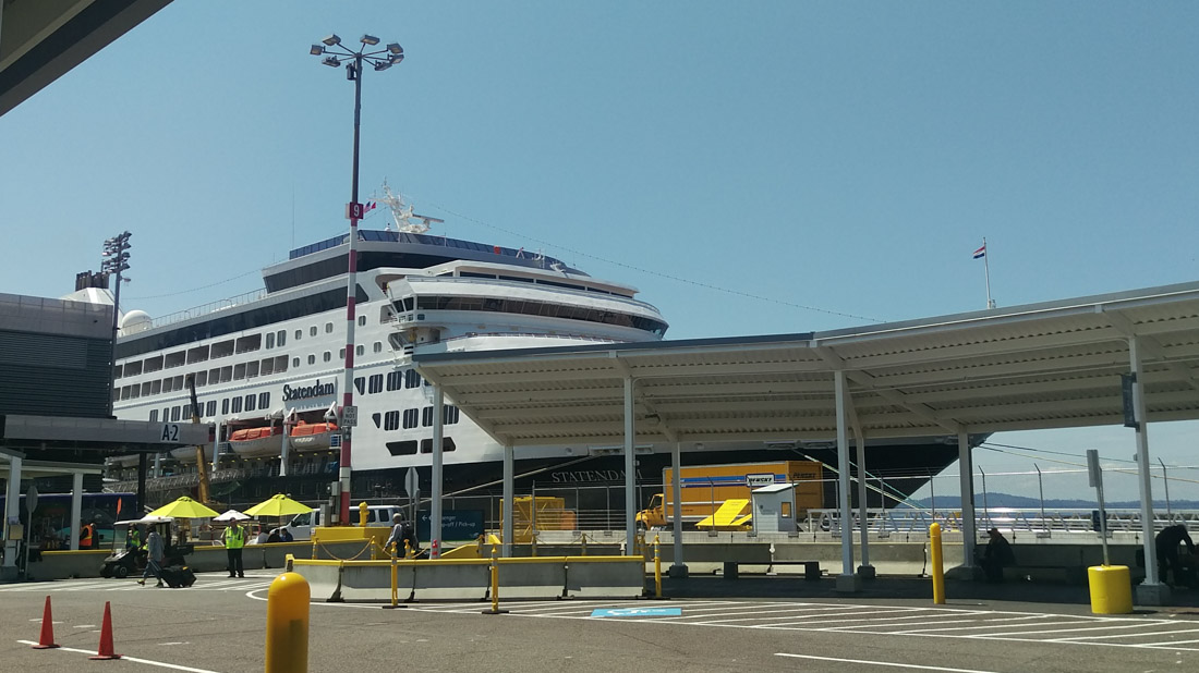 In celebration of our tenth anniversary, Melissa and I went on a fourteen-day Alaska cruise. On Monday, May 18, we flew from Washington Dulles International Airport to SeaTac Airport near Seattle, Washington, where we embarked upon Holland America Line’s m.s. Statendam. My long time readers may recognize the ship name; we sailed on the Statendam for our honeymoon just about ten years ago. We have always loved the Statendam and other smaller cruise ships, and of course there was great sentimental value in coming back to the same ship.