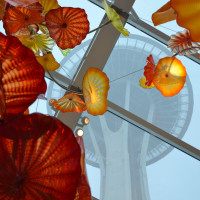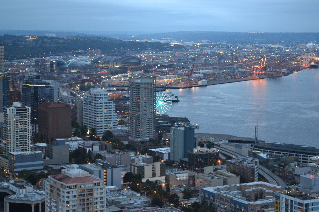 We stayed in Seattle for a couple of days after the end of the cruise. During the trip we visited Chinatown, the Columbia Center’s ‘Sky View’ observation deck (tallest building in the state of Washington), the Chihuly Garden and Glass museum, and the Space Needle. And we saw Melissa’s digital artwork at the Wing Luke Museum.