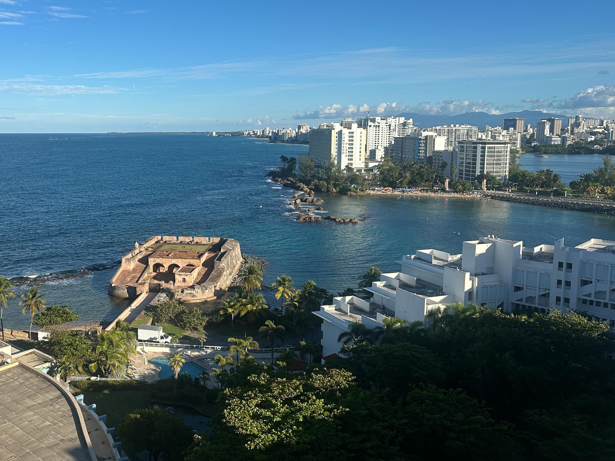 We stayed at the Caribe Hilton in San Juan, Puerto Rico, which is adjacent to an old Spanish fort (Fortรญn de San Gerรณnimo) and the ruins of an artillery battery (Baterรญa del Escambrรณn). We also visited the Castillo San Felipe del Morro and Castillo San Cristรณbal.