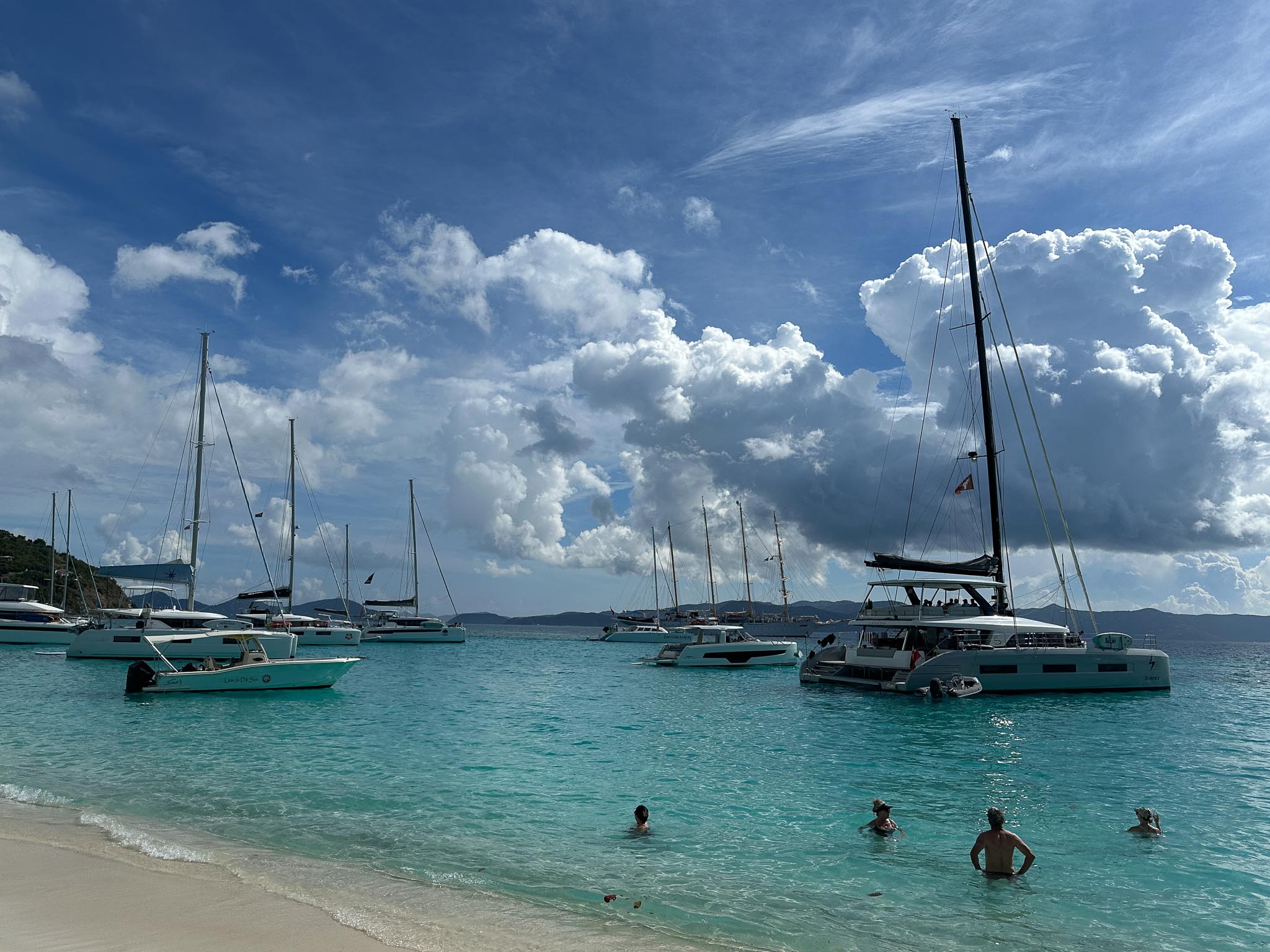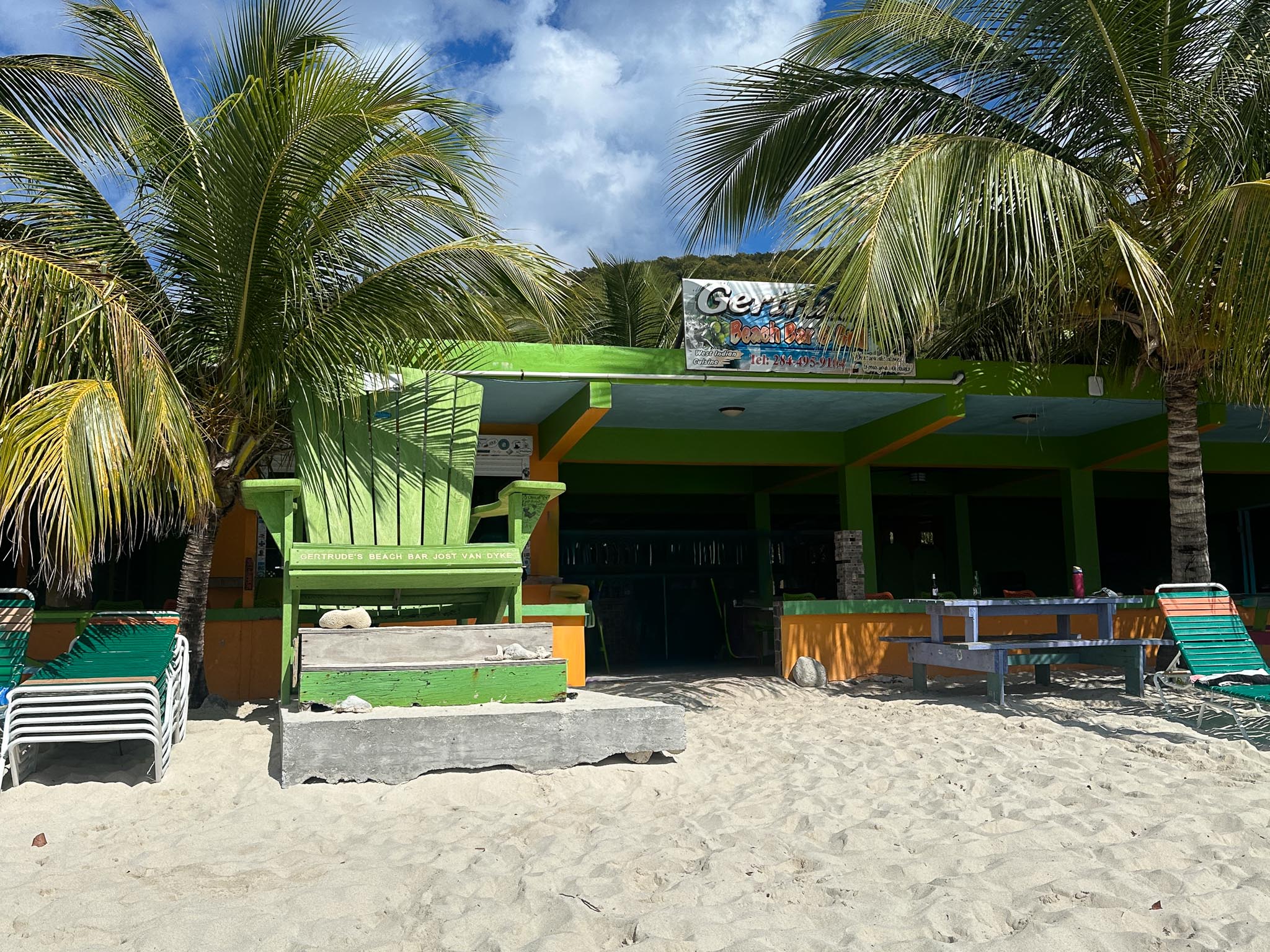 Our first port of call was Tortola, the most populous island in the British Virgin Islands. From there we took an excursion by boat to the famous White Bay on the island of Jost Van Dyke. The Soggy Dollar Bar at White Bay allegedly invented the Painkiller rum cocktail. We got ours from Gertrude’s.