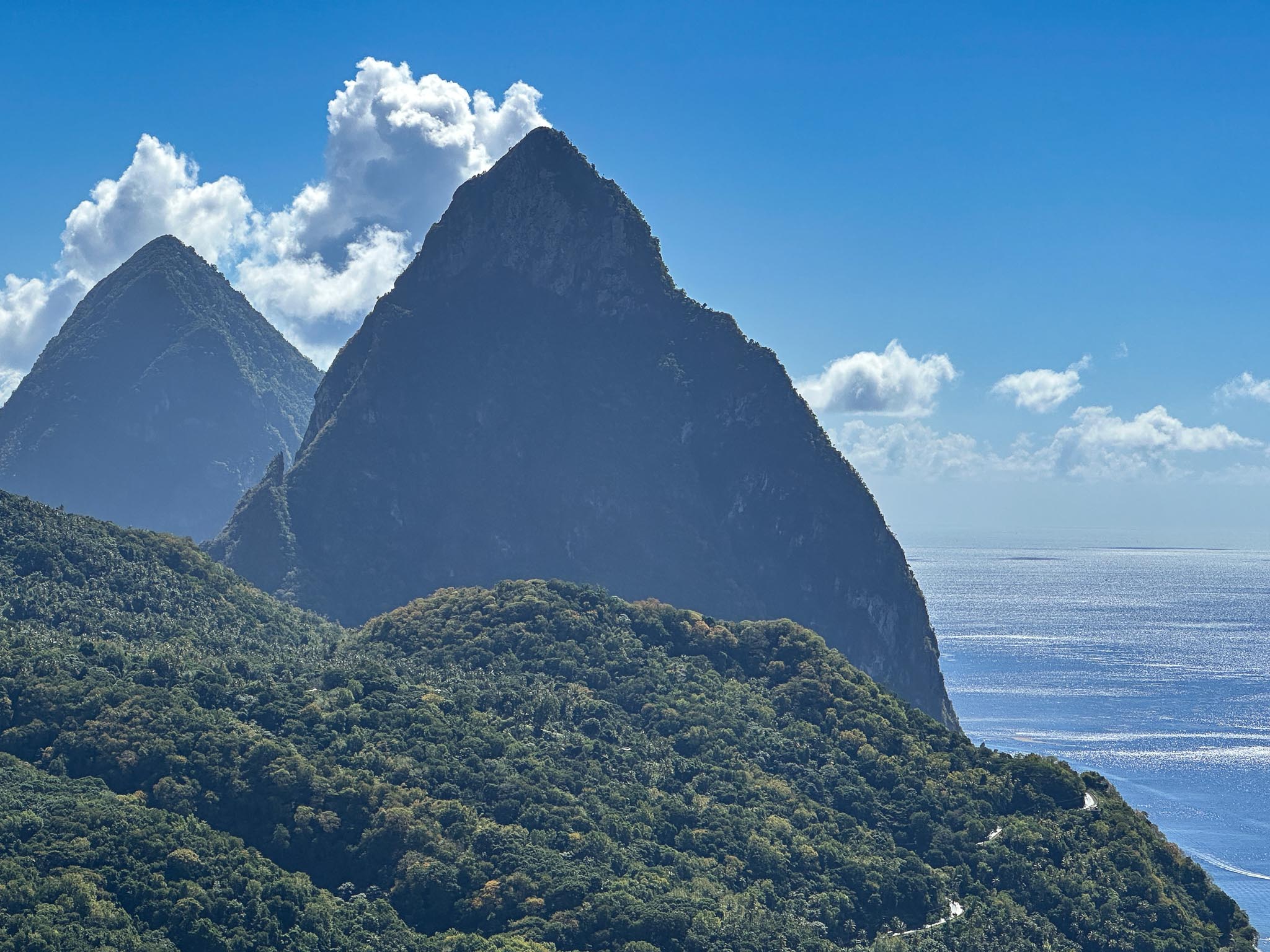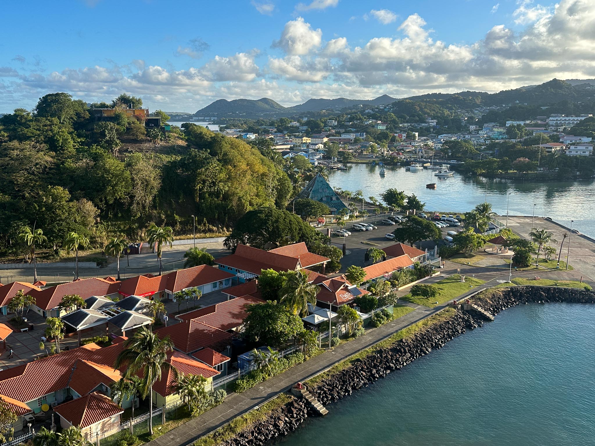 Our fourth port of call was Castries, Saint Lucia. We took another bus tour down the west (Caribbean) coast of the island to its most well known natural landmark: the Pitons. We also got to see some of the sights in Castries and have local food for lunch at a resort in the forest.