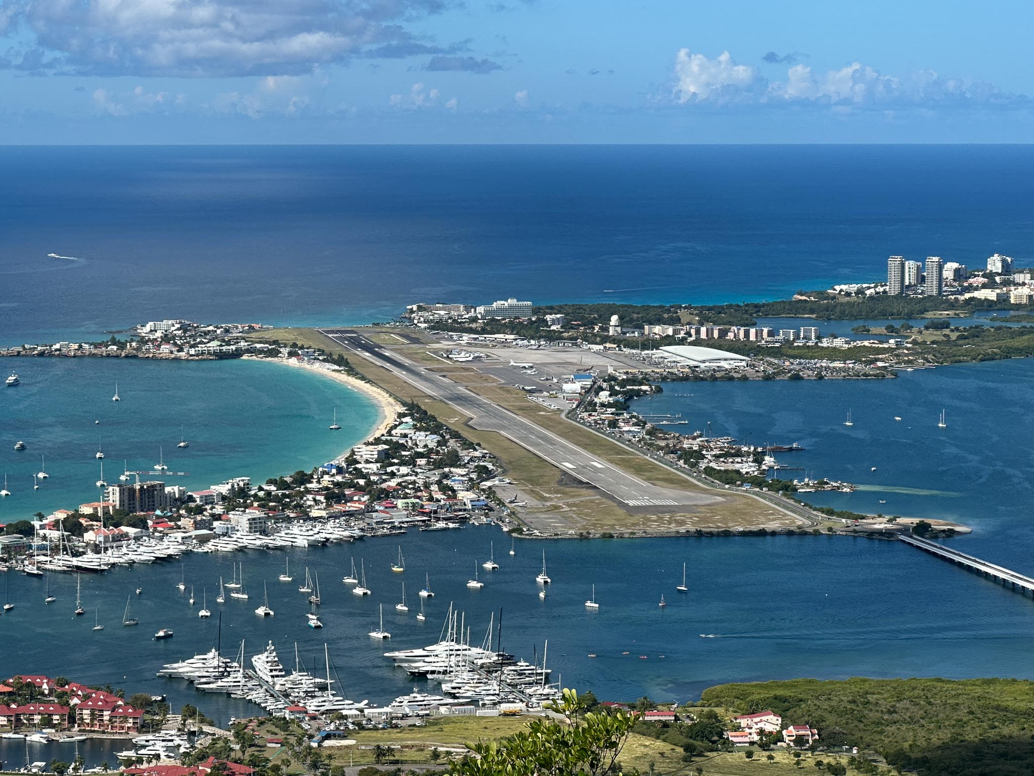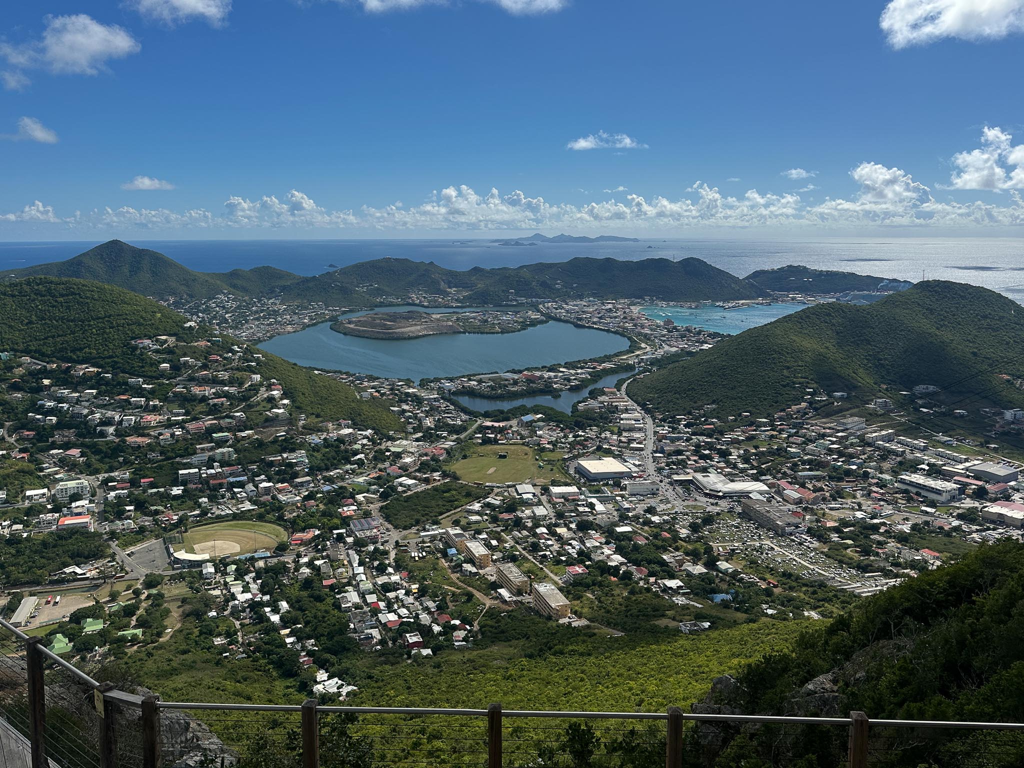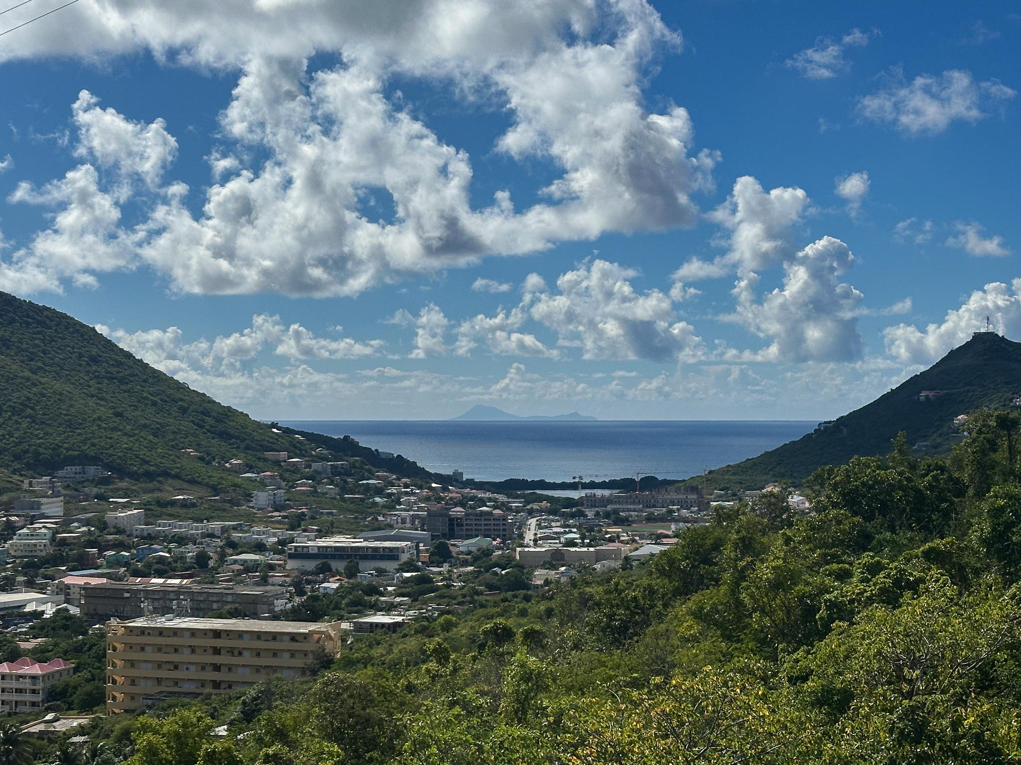 Our fifth port of call was Philipsburg, Sint Maarten. The island of Saint Martin is split between two countries: Sint Maarten (a constituent country of the Netherlands) and Saint Martin (an overseas collectivity of France). Our excursion took us to the top of a mountain on the Dutch side, to the Marigot Market on the French side, and to the famous Maho Beach off the end of the airport runway.